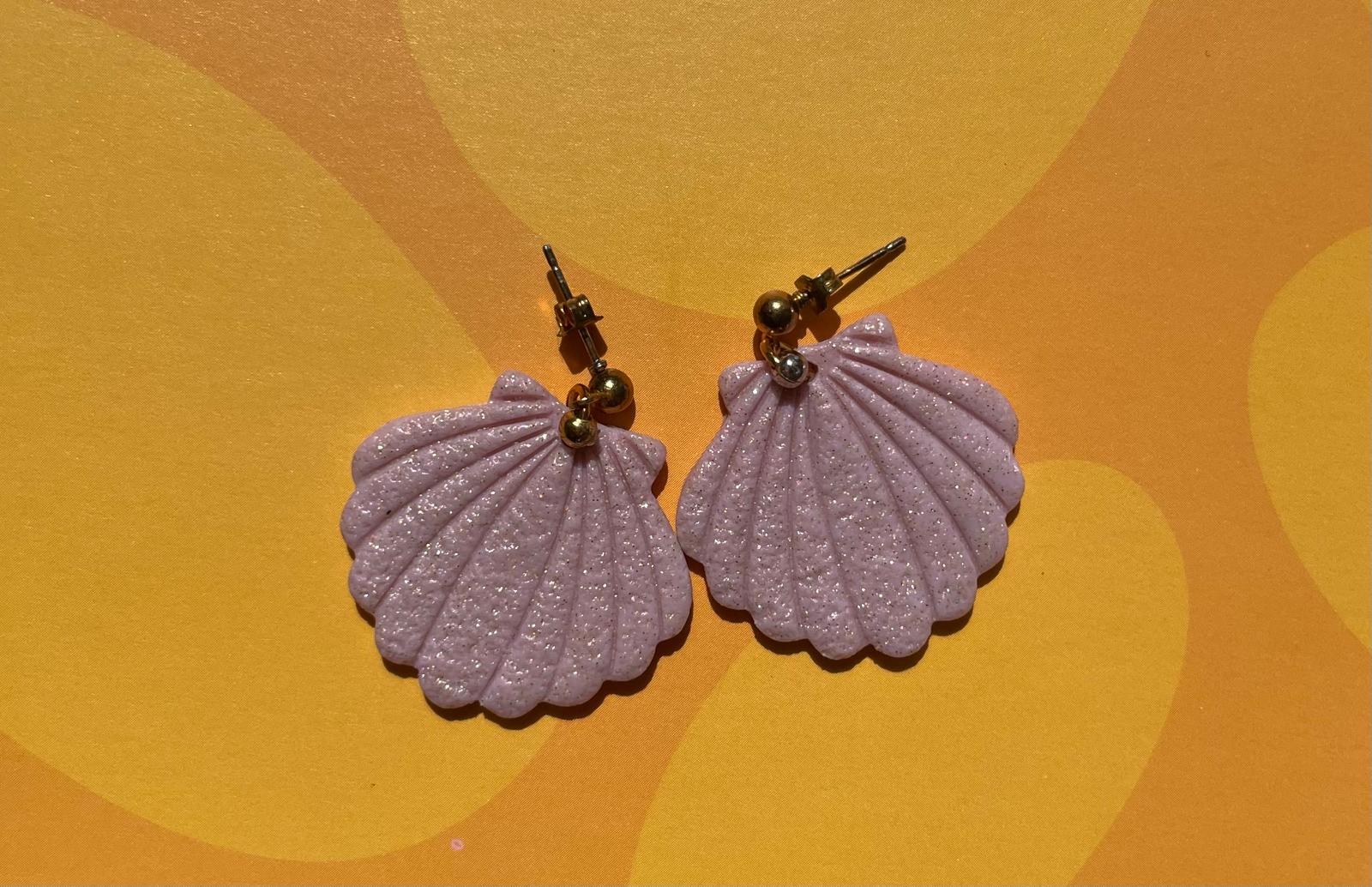 Pendientes de conchas con bolita dorada.