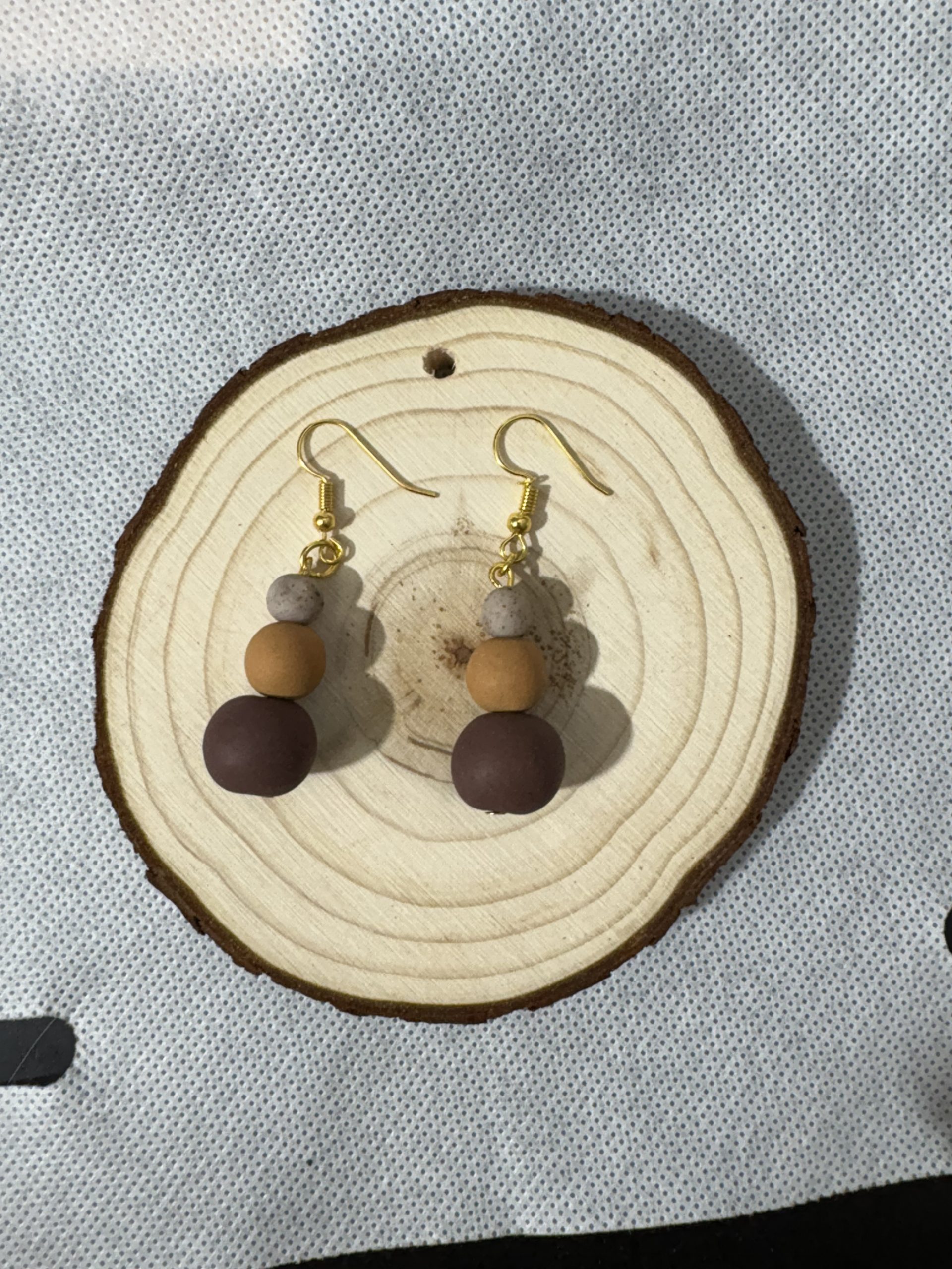 Pendientes formados por tres esferas de tamaños graduados (de mayor a menor) en hermosas tonalidades marrones. Su diseño versátil los hace ideales para el día a día y perfectos para cualquier estación del año.